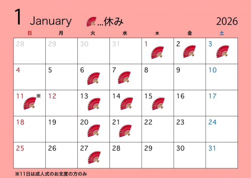 11日は成人式のお支度のみ営業です