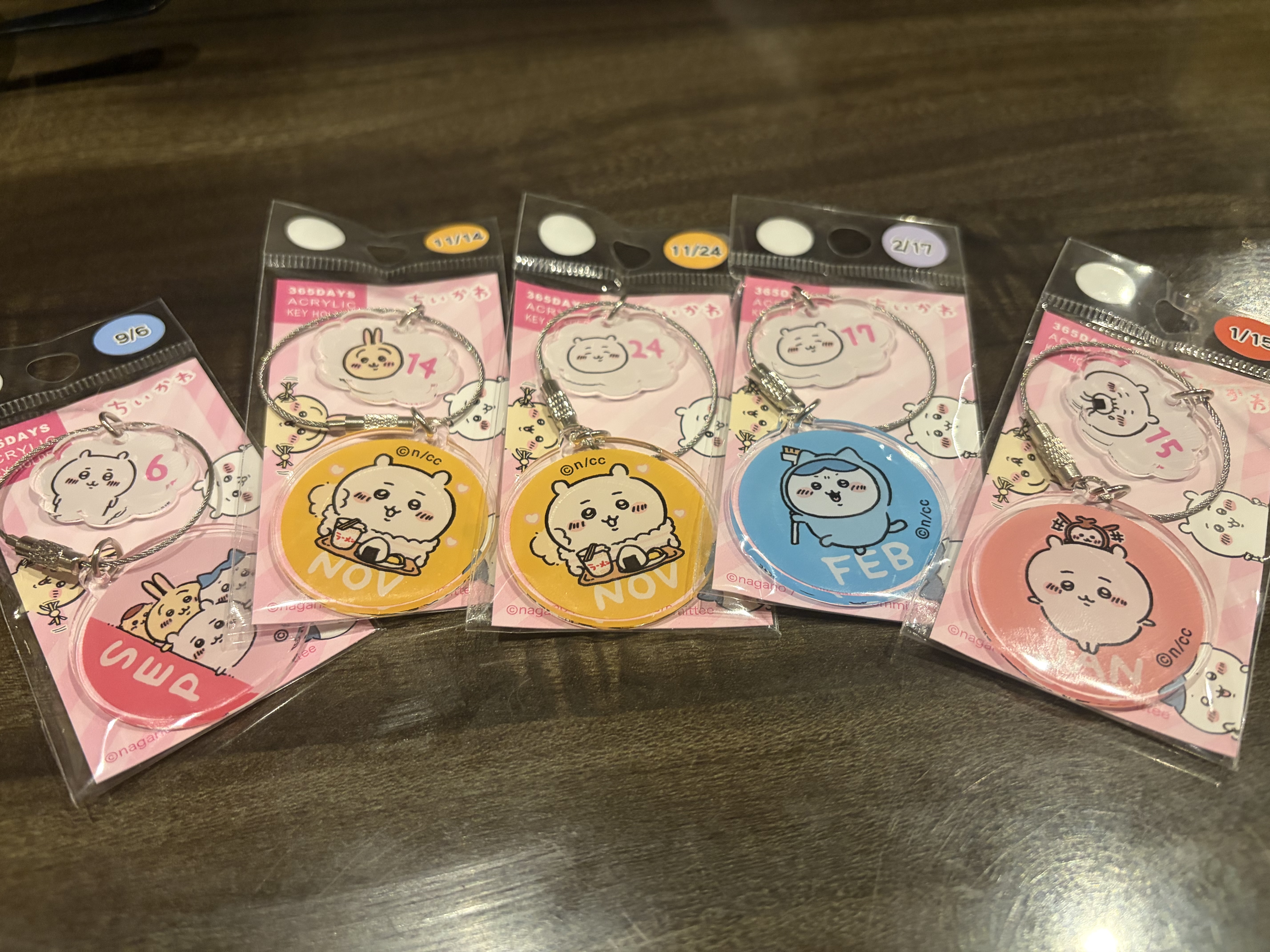 そして、嬉しかったのがちいかわのキーホルダー!オルガメンバー5人の誕生日になっていて5つあったのでみんなでお揃いに(*´`)